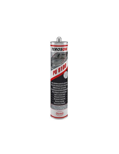 Jednokomponentni zaptivač za šavove i spojeve za elastično lepljenje i zaptivanje u automobilskoj industriji. TEROSON® PU 9100 je beli/sivi poliuretanski lepak/zaptivač za karoserije vozila, savršen za zaptivanje šavova i spojeva. Pruža izvanrednu adheziju na obojenim površinama, kao i na mnogim metalima i plastikama, bez potrebe za prajmerom. Za aplikaciju možete koristiti bilo koji profesionalni alat za doziranje sa klipnom šipkom, poput TEROSON® ET STAKU HAND GUN. Najbolje rezultate postižete sa TEROSON® ET GUN POWERLINE II ili TEROSON® ET AIR GUN MULTIPRESS. Pre nanošenja, preporučuje se priprema površine sa TEROSON® VR 10. TEROSON PU 9100 očvrsnjava reakcijom sa vlagom, formirajući mek i elastičan spoj. Nije pogodan za provodno lepljenje. Prednosti: